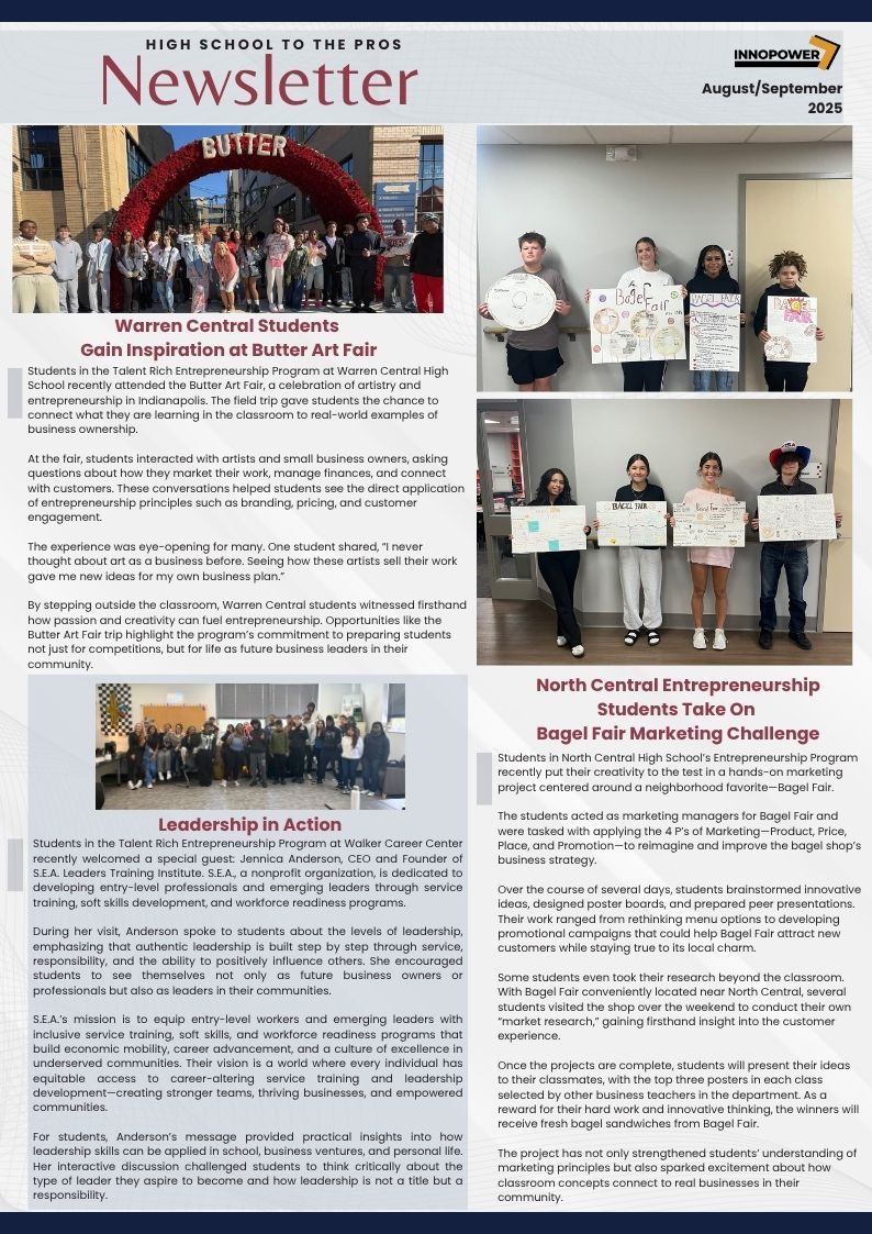 High School 2 the Pros is an industry-aligned talent accelerator designed to equip high school students with next-gen skills, real-world insights, and early exposure to entrepreneurial pathways. Through a strategic partnership between Ivy Tech and Washington Township, students earn dual-credit while engaging in immersive learning experiences that bridge classroom theory with market-ready competencies.